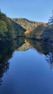 Nette kleine Wanderung (6km) zur kleinen Dhünntalsperre vom Parkplatz in Pilghausen. Die Anfahrt zum Parkplatz ist etwas holprig, da die Wegstrecke durch den Ort ziemlich schlecht ist. Dafür ist der Parkplatz schön, allerdings ohne Übernachtungsmöglichkeit und darauf wird auch durch ein Schild ausdrücklich hingewiesen.