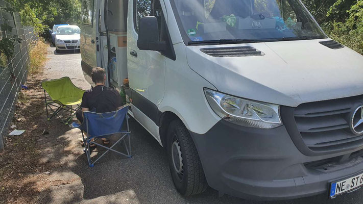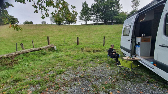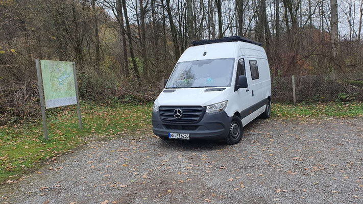 Wir können uns ein paar schöne Stunden an der Sieg bei Hoppengarten. Das Wetter ist noch schön warm und trocken. Der Parkplatz, den wir über Park4Night gefunden haben liegt sehr ruhig und direkt an der Sieg. Hier ist auch eine große Wiese, so dass wir heute Nacht hoffentlich Sterne beobachten können.
