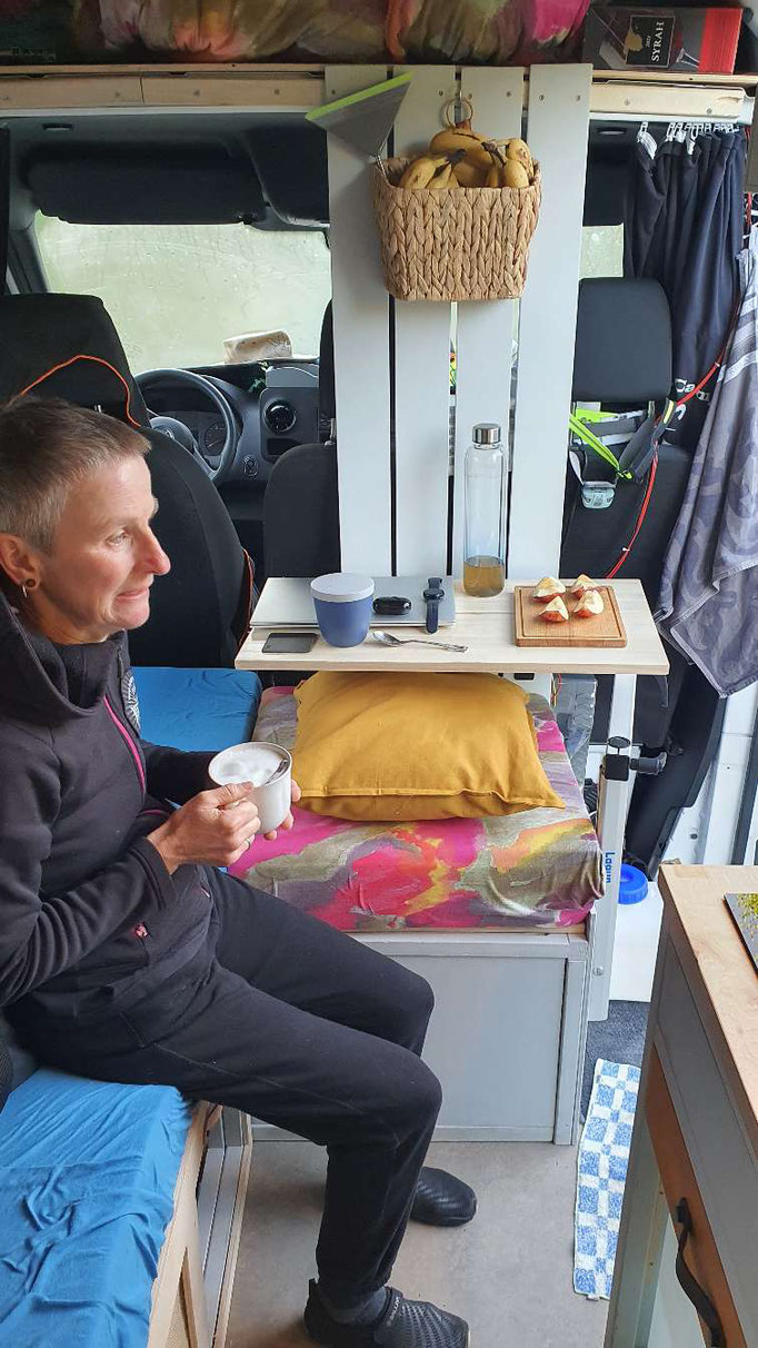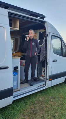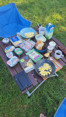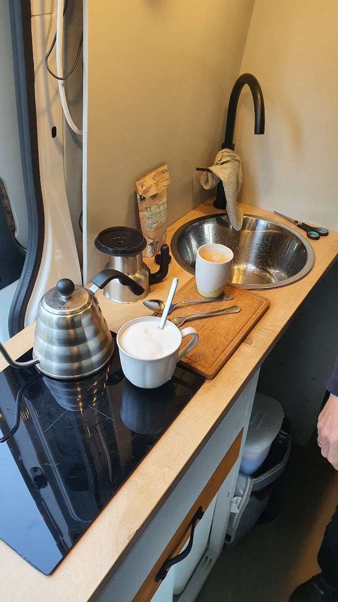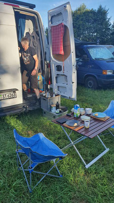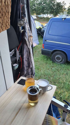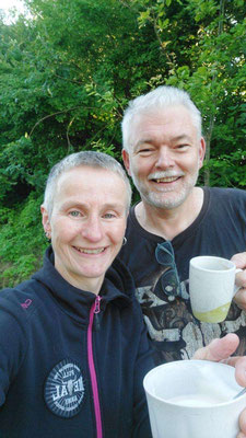 Haben gerade Kaffee gemacht und gefrühstückt.