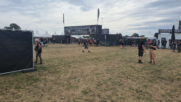Kurz vor 18 Uhr, es hat leicht angefangen zu regnen - aber wirklich nicht viel. Wir haben jetzt, nach 30 min anstehen, unsere Tickets in die obligatorischen Wacken Armbändchen mit integrierter Bezahlfunktion, getauscht.Im Screenshot ist unser aktueller Standort im Wackenfield zu sehen.