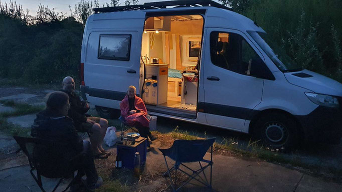 einsamen Stellplatz , direkt am Kreideloch, gefunden und treffen uns dort mit zwei Freunden zur Übernachtung